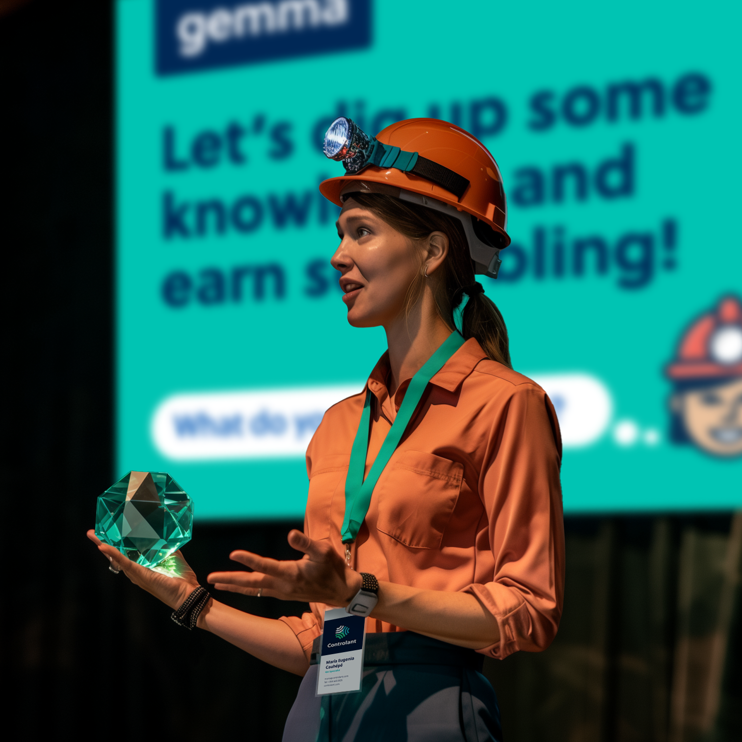 Controlant was developing a new Learning Management System when they reached out to me to help create an identity. They had been contemplating the name Gamayun, a Slavic symbol of wisdom and knowledge, and had chosen a platform that incorporates gamification, incentivizing employees by earning awards upon course completion. Recognizing Controlant’s global workforce, the name Gemma was chosen, a universally relatable alternative to the Slavic-inspired Gamayun. This choice also revealed the opportunity for a more cohesive visual narrative: a logo that embodies a miner, complete with a classic helmet and headlamp. This imagery would not only pay homage to the process of mining, but the headlamp also symbolizes Gemma’s role as a knowledgeable guide within the complex learning platform. CREDITS: Creative Director: Jeff Porter; Copywriter: Jeff Porter; Art Director and Designer: Jeff Porter; Photography: Stock; Agency: Jeff Porter Creative.